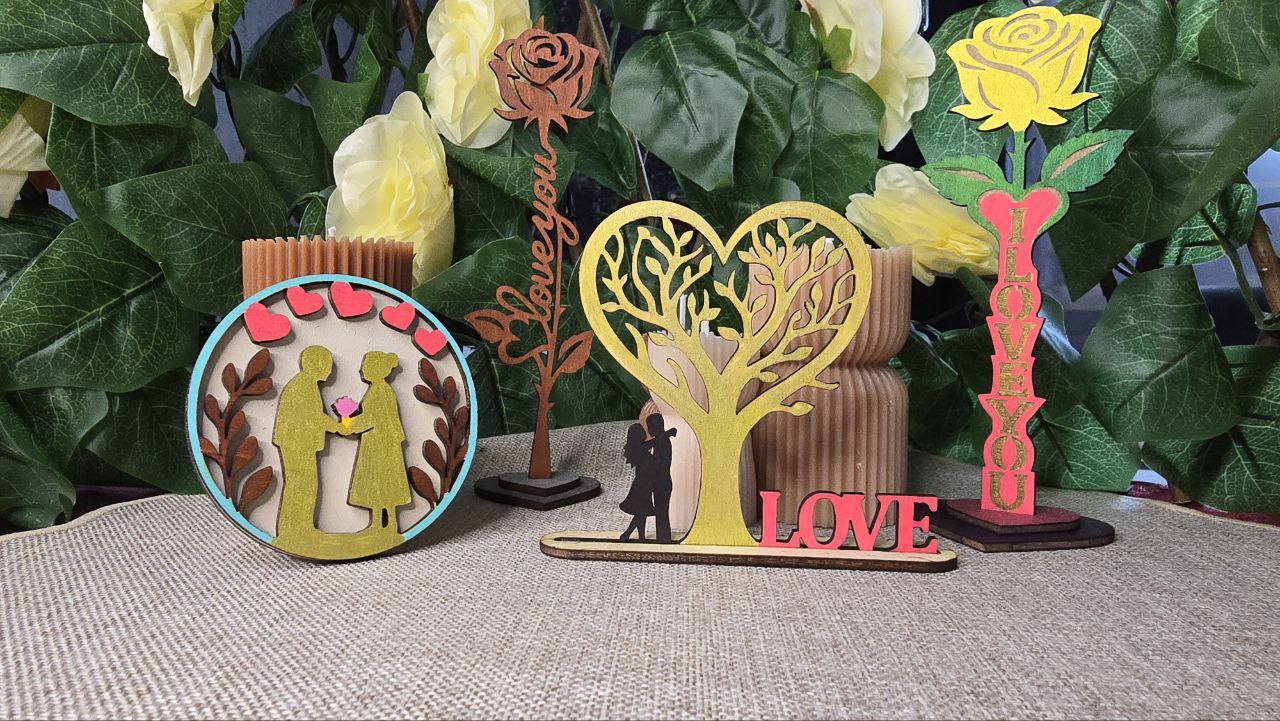 "LOVE" Schriftzug aus Holz mit Herz - Romantische Tischdekoration